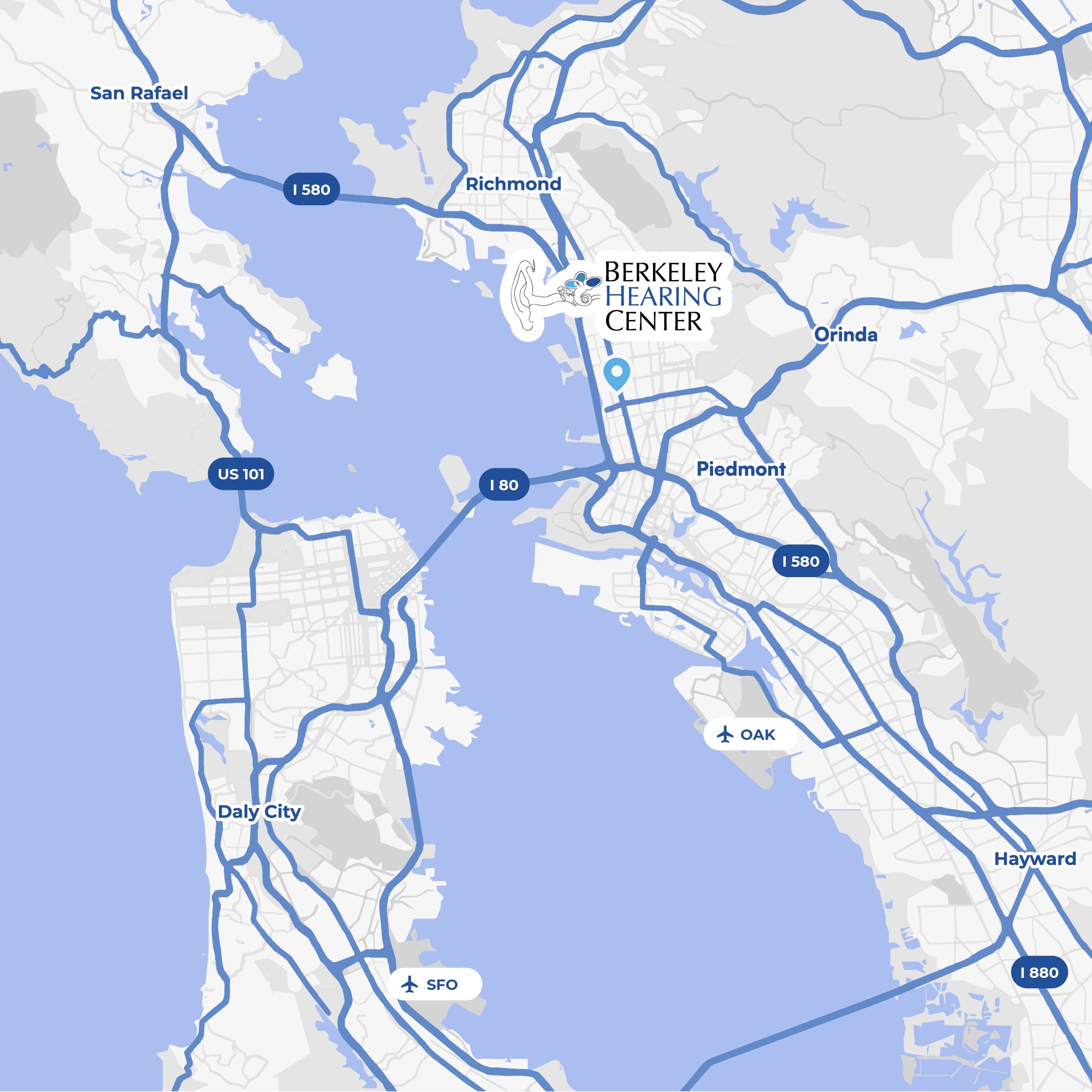 Situated in a unique and dynamic community, Berkeley Hearing Center is minutes from UC Berkeley and UCSF. Our neighbors include Berkeley Bowl, Lawrence Berkeley National Lab along Aquatic Park, Pixar, Meyer Sound, and Bayer, along with many small and local businesses.